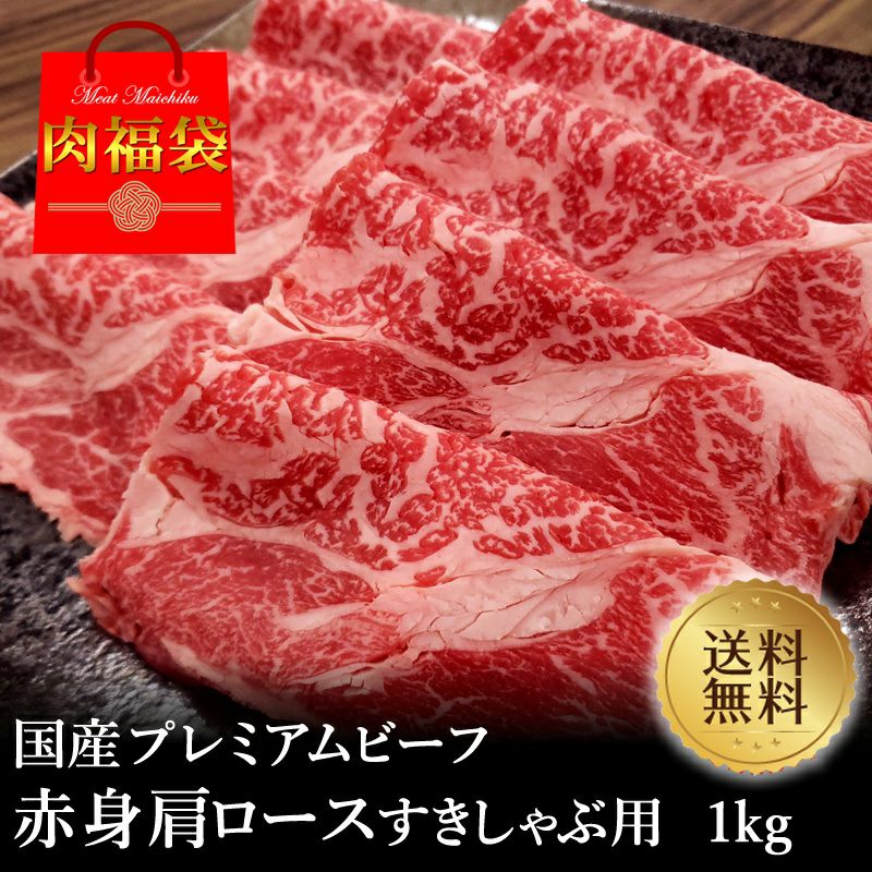 【歳末新春福袋】【国産プレミアムビーフ】赤身肩ロースすき焼き・しゃぶしゃぶ用1kg【送料無料】