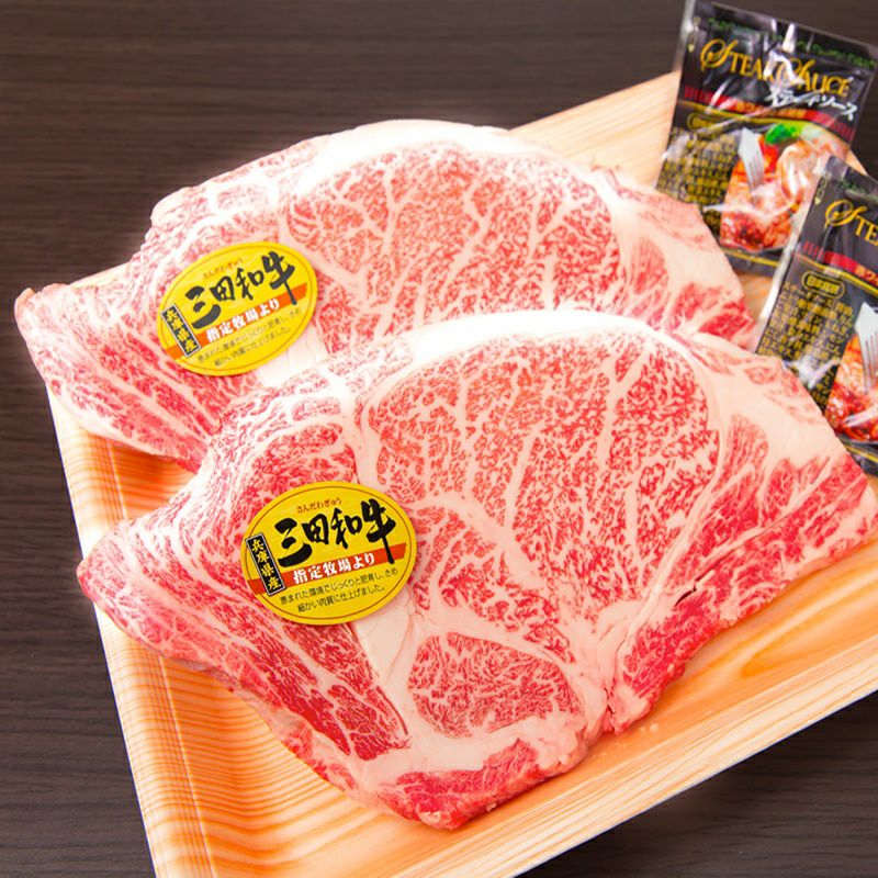 三田和牛のリブロースステーキはキメが細かく肉質が良いので肉そのものを味わってください!