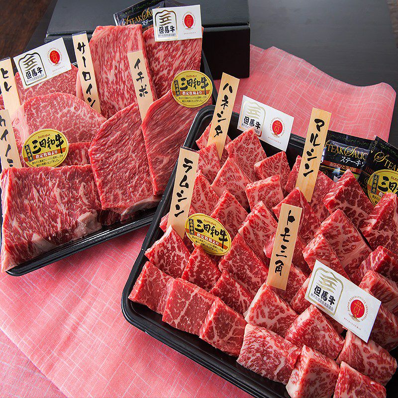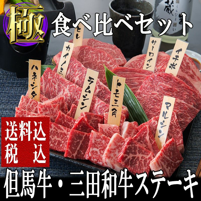 但馬牛と三田和牛の赤身と霜降りの部位で食べ比べ!!少しの量でたくさん食べれるお得なセット!