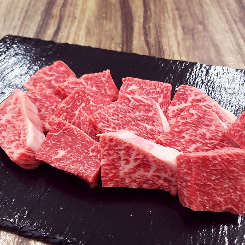 赤身肩肉サイコロステーキは、霜降りが多く、大きなカットでも柔らかく、肉本来の味が楽しめます。