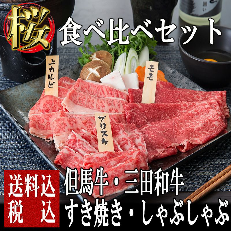 但馬牛と三田和牛の赤身と霜降りの部位で食べ比べ!!少しの量でたくさん食べれるお得なセット!