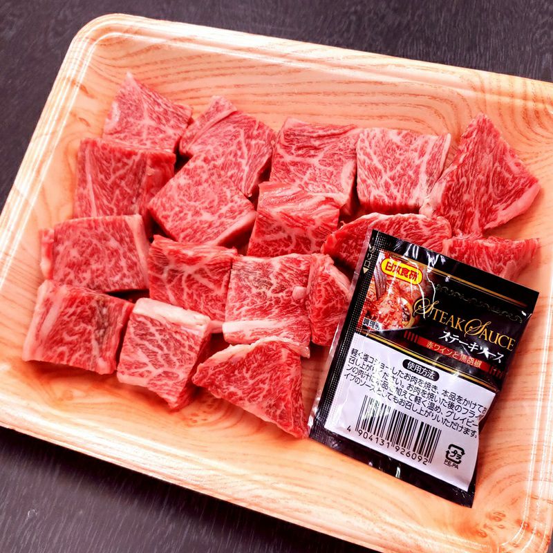 お届け内容 肩ロースサイコロステーキ用500g,牛脂,ステーキソース