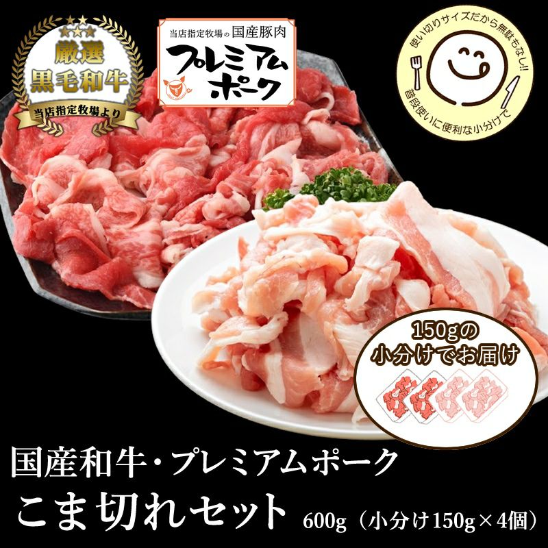 【国産和牛・国産豚】こま切れセット600g(牛こま切れ・豚こま切れ各150g×2個)
