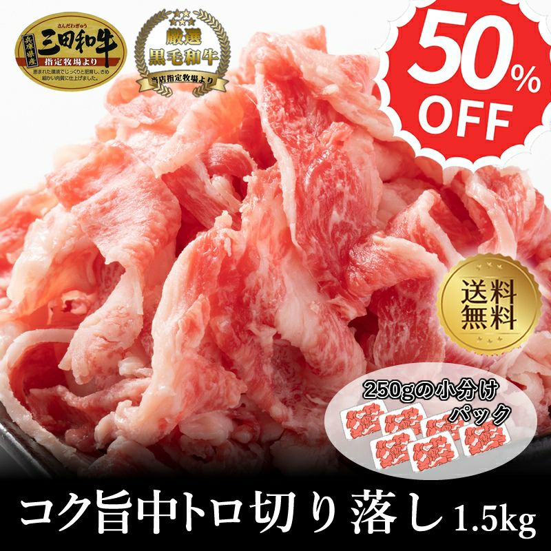 【三田和牛・黒毛和牛】コク旨中トロ切り落し1.5kg(250g真空×6パック)【送料無料】
