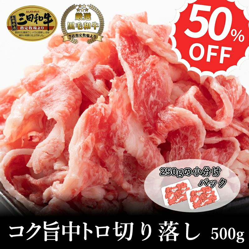 【三田和牛・黒毛和牛】コク旨中トロ切り落し500g(250g真空×2パック)
