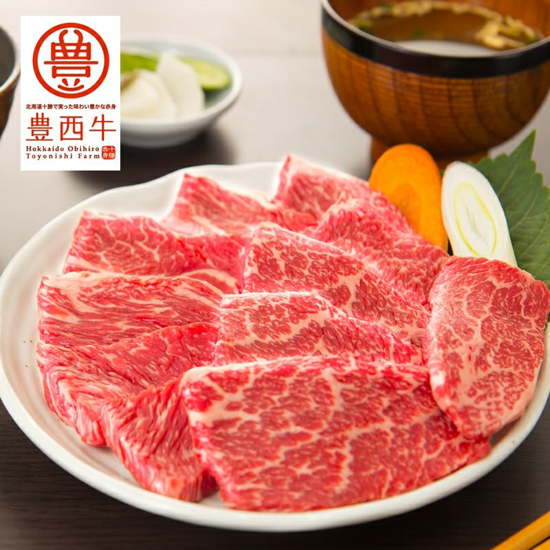 豊西牛は北海道の大地で健康に育った十勝産牛肉です。北海道の大地が生み出すミネラル豊富な水と、発酵飼料を食べて育った健康な牛の赤身のお肉は旨みが凝縮されています。あっさりしていてお腹に優しいヘルシーなお肉をご堪能ください。