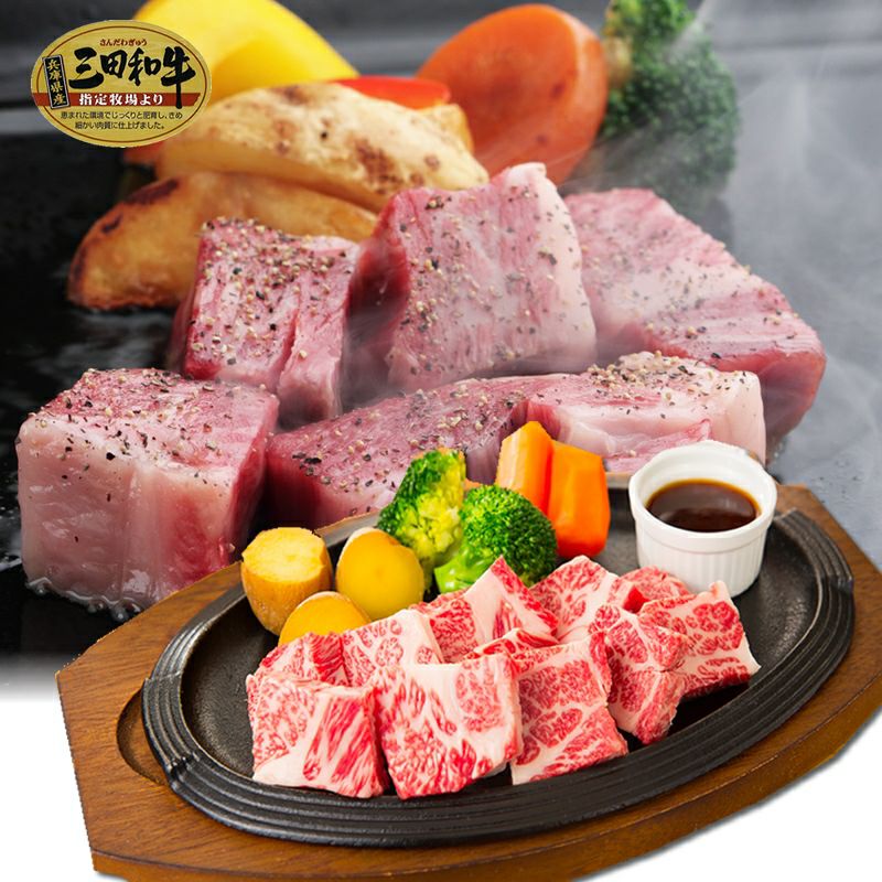 但馬牛や三田和牛の最高級和牛のステーキを取り揃えております。 A5ランク~A4ランクのきめ細やかなサシが入った柔らかく、くちどけが抜群の霜降ステーキをお手ごろなお値段でご提供しております。 お祝いの席に映えるサーロインステーキをはじめとする霜降のステーキや、お子様ランチに使える柔らかく食べやすいサイコロステーキも取り揃えております。