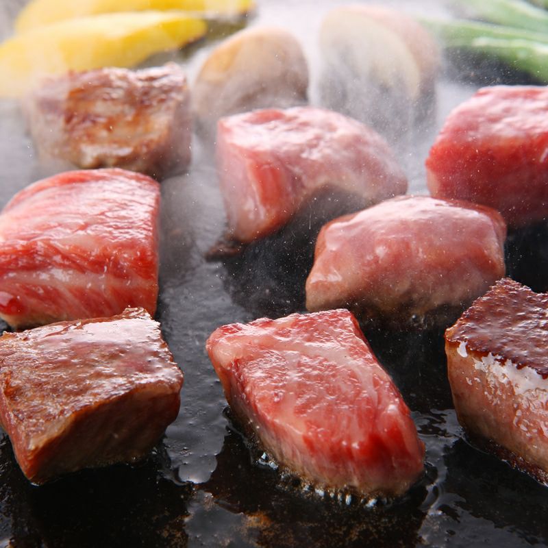 お祝いの席に映えるサーロインステーキをはじめとする霜降のステーキや、お子様ランチに使える柔らかく食べやすいサイコロステーキも取り揃えております。