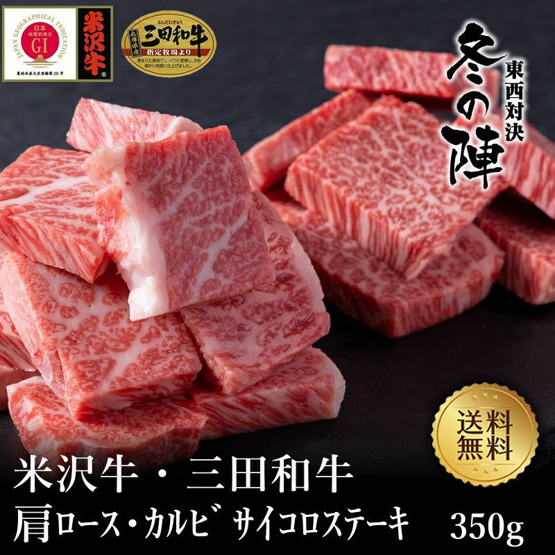 【東西対決 中秋の陣 最大40%割引】【米沢牛・三田和牛食べ比べ】カルビサイコロステーキ食べ比べ400g(米沢牛赤身カルビ200g,三田和牛霜降カルビ200g)【送料無料】