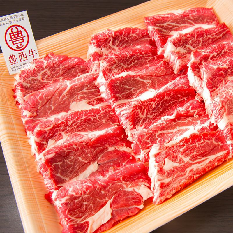 豊西牛は北海道の大地で健康に育った十勝産牛肉です。北海道の大地が生み出すミネラル豊富な水と、発酵飼料を食べて育った健康な牛の赤身のお肉は旨みが凝縮されています。あっさりしていてお腹に優しいヘルシーなお肉をご堪能ください。