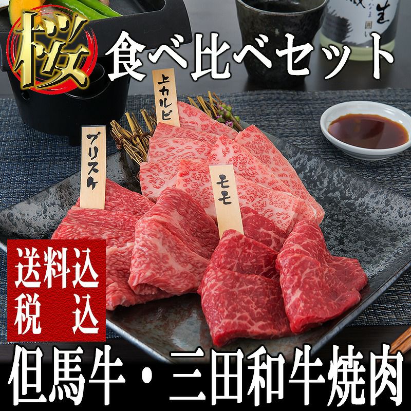 【但馬牛・三田和牛食べ比べ】三種【桜】焼肉セット300g【税込・送料込】