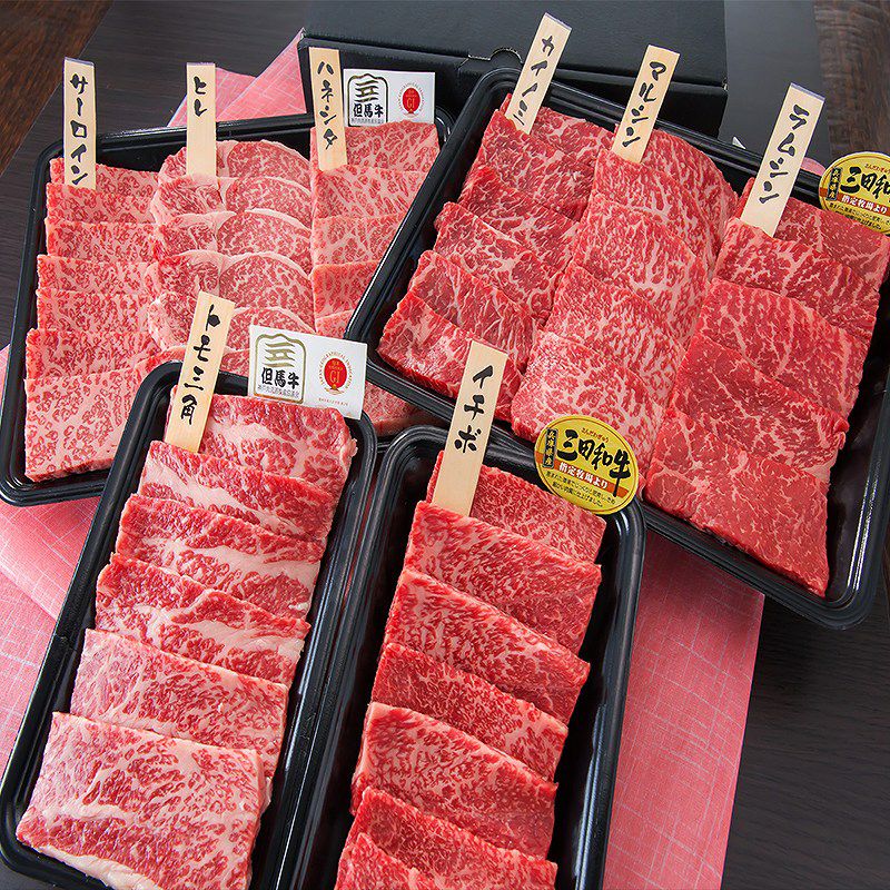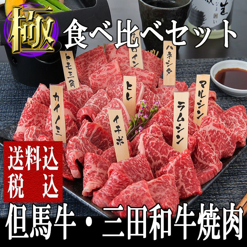 但馬牛と三田和牛の赤身と霜降りの部位で食べ比べ!!少しの量でたくさん食べれるお得なセット!